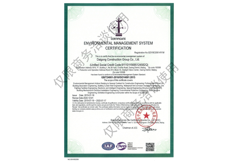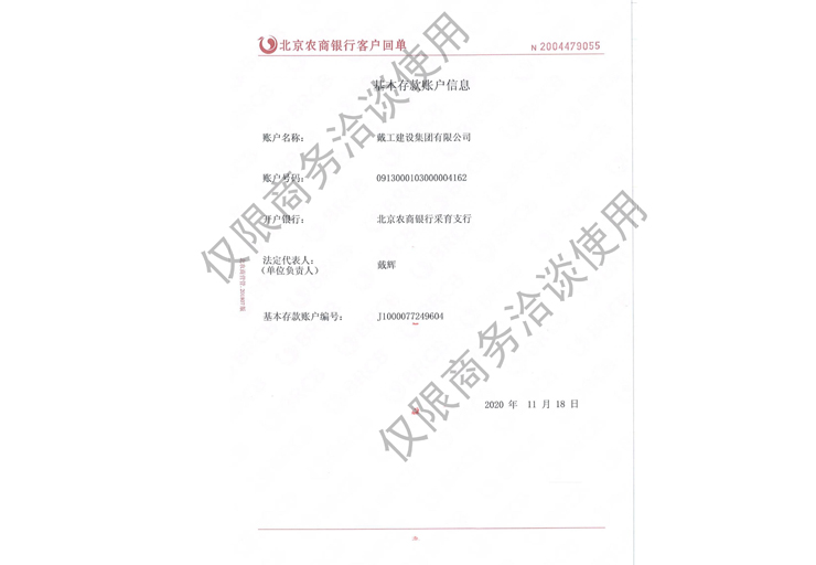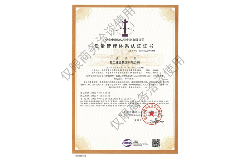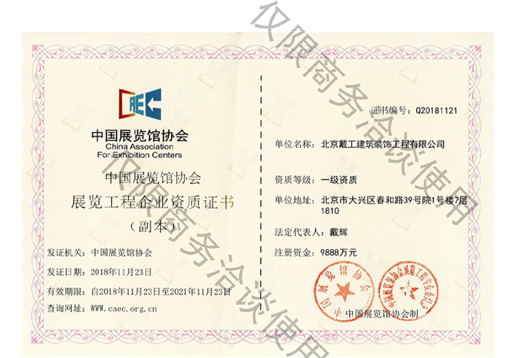 戴工建設集團有限公司,創(chuàng)建于2009年,注冊資本9888萬元人民幣。公司位于北京市大興區(qū)。具有建委頒發(fā)的建筑裝飾裝修專業(yè)壹級,防水保溫工程專業(yè)壹級,建筑幕墻專業(yè)貳級,消防設施專業(yè)貳級,電子與智能化專業(yè)貳級,特種工程(結構補強)專業(yè)不分等級,建筑機電安裝專業(yè)貳級,環(huán)保工程專業(yè)貳級,鋼結構專業(yè)貳級,建筑工程總承包貳級,建筑裝飾工程設計專項甲級,展覽陳列工程設計與施工壹級,展覽展示工程壹級...更多>>